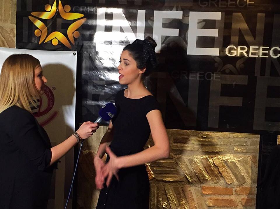 Demy arrived on time, with a big smile as always. She first answered the questions from the TV stations and then INFE Greece gave her some presents. Among them, a Greek flag to carry with her in Kyiv.