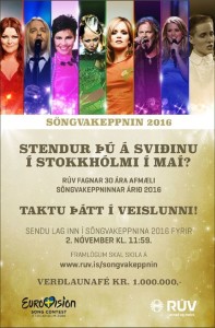 Next year Iceland celebrates 30 years in the Eurovision Song Contest and broadcaster RUV confirmed yesterday that they will once again use Söngvakeppnin as the national final to select their participant for Eurovision 2016. Submissions for the competition are open now and will close on 2nd of November.