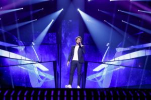 Amir is the star of this show and in the second rehearsal, there were more glossy lights on the stage. At one point some of the planets from the solar system came flashing towards the front of the stage.There were also reflections of pink and blue on the floor. The song is a loveable sing along but is losing some of its appeal on a large stage. Nothing about the performance at this time screams winner, but like the other acts, he will have time to analyse this first showing. Amir throws his hands out at the YOOOOUU chorus. He needs to have effects coming from them.