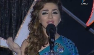 Then the show continued with the dance shows three couples who were using the rhythm of the national song. Oh what a surprise? The females of those couples were tonight’s hosts Hüsniye, Leyla and the male dancer was Kamran. The music then turned to Britney Spears’ Womanizer, and then Michael Jackson’s Black or White was the next. In the show we frequently saw the official logo of Eurovision Song Contest 2012.