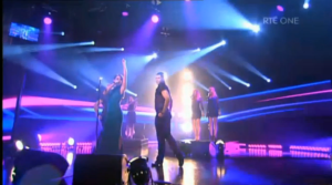 Wearing a dark floor length dress Kacey sells this song well in her three minutes. Behind her she has two female backing singers, one voilinist and two male Irish dancers which I have to say I feel don’t add anything to this performance. Heartbeat is a decent pop track and is likely to be the winner tonight. From the panel we hear that they like this and it could work where Ryan (Dolan) fell down. A great pop song. The Irish element is mentioned – however it was felt that there was too much dancing.