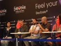 Alexej Vorobjov from Russia entered a very crowded conference room. Those present were treated to a traditional Russian song and then a rendition of Get You. Up to now, the song has had English lyrics only, but some Russian has been added to the beginning and end of the song to add "little part of Russian heart" to the song. Alexej added that he will record a Russian version after the contest.