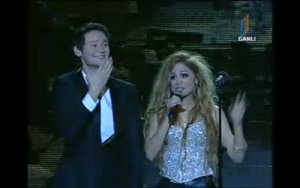 The show began with the snippets of participants from snowy Azerbaijan and then a dance vision welcomed everyone to the exciting night. The first surprise of the night was the background music which was used at the Eurovision Song Contest 2009 in Moscow. The host of the night, Leyla Aliyeva, who also announced the results of Azerbaijani voting in Oslo, presented the night both in English and Azerbaijani. Surprisingly, participants also interviewed both in Azeri and English inside the green room. So tonight’s bilingual show certainly gave a warm welcome to viewers who were watching the show all over the world.