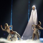 The 2009 Eurovision Song Contest participant Brinck has this time created a singer-songwriter song, builds up nicely. In this line up it stands out from the many up-tempo song. On stage Brinck is joined by two male backing singers and a drummer with a full drumkit. Brinck walks a bit on a threadmill to create the feeling of just walking forever – and that large the stage isn’t. He is a solid performer who comes with a strong song, but maybe there is too much going on in the stage performance for this type of song.
