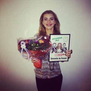 This year Jørgen de Mylius showed up himself to hand over the award to de Forest. Emmelie afterwards wrote the following thank ytou message on Facebook: "I really want to say thank you to the Danish Melodi Grand Prix fanclub. For always supporting me up and for giving me this award today, presented by Mr. Melodi Grand Prix, Jørgen de Mylius".