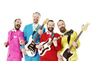 The four official band members are sporting their trademark colourful tracksuits with two bearded male backing singers dressed in vibrant colours behind them. The first two run throughs were generally quite stiff looking when compared to the music video. All four members have fantastic chemistry on stage and the almost child like enthusiasm was clearly evident as they urged for people to join in with hand clapping and arms in the air. A nice touch is when the four band members spell out the word love with their arms as the climax of the song.