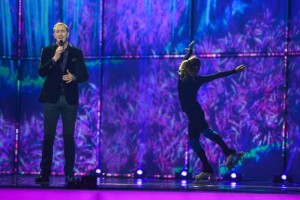It looks however at times that Sergej is having trouble with both his earpiece and with looking into the correct camera, but those small difficulties didn’t prevent him from looking rather bemused at times. His third run through was interupted and had to be started again due to technical issues. Despite the technical issues, Montenegro’s first rehearsal was very succesful and left an impression of a highly polished act and an outstanding vocal.