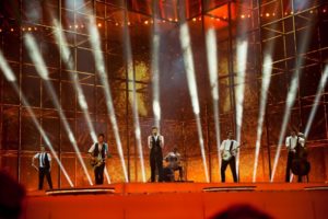 Sebalter is in fine vocal form and really comes across as having a good time on stage. He is all smiles, and his whistling is pitch perfect. The whistling clearly seemed to be infectious, as a number of press were copying it throughout the press centre. He is clearly inspired by Alexander Rybak in his routine, with oodles of drama as he bangs the drum and fiddles as if his life depended on it. He is another artist that clearly feels comfortable in front of the camera and there are some great shots of him – let’s face it, he is rather photogenic so doesn’t have to do much in that respect.