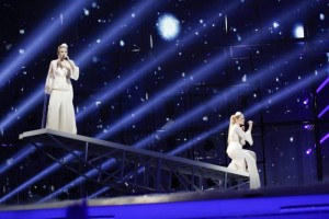 The Russian twins, Anastasia and Maria, gave a beautiful rendition of their song, Shine, during the opening night of the EuroClub on Monday night. It will be interesting to see whether there will be any changes to their presentation for the second rehearsal – will the slightly messy intertwined ponytails still be there for example?