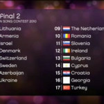 Running order – Final: Five countries won’t have to go through a semi-final in order to qualify for the final. As usual these are the big4; United Kingdom, France, Germany and Spain plus the host country. 20 more countries will participate in the final; ten from each semi-final, making it a total of 25 countries at the end competing to win the 2010 Eurovision Song Contest.