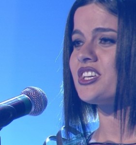 A change of tempo at last. More up eat with strong effect of the strobe lighting. Xhejsi is wearing a red top and red pants. The song has a rock beat style with lots of guitar and soaring vocals. A strong performance that sits well amongst all of the ballads so far.