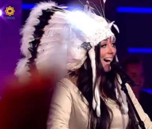We continue with a powerful timeless ballad, which requires a powerfull voice, but Pearl manage quite well. She is dressed in a short blue dress with sparkles on it – she is wearing make-up on in the same colour. She has four female backing singers and one male one. Near the end pyrotechnics are used.