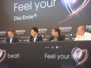 Thomas Schreiber was pleased with the semi final yesterday and told the press that there had been about 16 000 sold tickets to the event. Tomorrow it will be even more audience in the arena since they have already sold approximately 17 000-18 000 tickets. The final on Saturday are more or less sold out but there still might be a few tickets left. He also added a few words about the interval in the second semi final which is the host broadcasters way to show contemporary German culture to the European viewers.