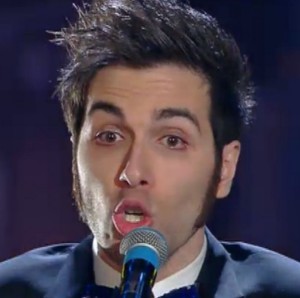 Renzo Rubino –Il Postino (Amami Uomo) – Renzo remained at the piano for his rendition of his mostly understate ballad. However, once the tenor enters the fray, things liven up a bit, but only a bit.