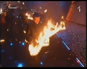 Elizabete is famous in Latvia as singer and musician in Eirodziesma as she participated in 2008 with her song Take Me Home but couldn’t take the ticket for Belgrade. The song, You are A Star, has a rock spirit, but we actually heard some ethnic melodies from Baltics for the first time in Eirodziesma 2012 with this song. Several drums and several of male musicians helped Elizabete on the stage. In the performance, they set the drums on fire, played a guitar which they also set on fire. It was a great visual show.