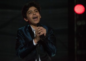 Italy was our third debutant country. This is a beautiful ballad but it is a bit dated and the lyrics are too mature for a children’s contest. During the whole performance Vincenzo (who is the only male participant of the competition) stood alone in the centre of the stage and he did not need nothing else than his powerful voice to impress Europe. Vincenzo is gifted with a superb voice and he hit the high notes with no problems. He was dressed very smart with a dark suit, white shirt and black tie. The backdrop was pretty dark at first but, as soon as Vincenzo began to sing, it turned into orange and purple spirals which predominated during the whole performance and especially at the most dramatic parts of the song. This performance surely gave the viewers goosebumps.