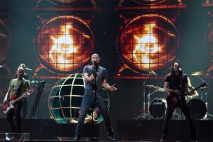 The staging is dynamic, streamlined keeping in line with the performance. The lead singer looks every part the rock star, bounding onto the stage from steps at the rear of the stage, strutting around confidently. The backdrop features flashing stadium lights featuring on the backdrop, in shades of silver and gold, contrasting nicely with the red strips lighting up the stage from below and above with pulsating white rays, echoing the colours of the Turkish flag.