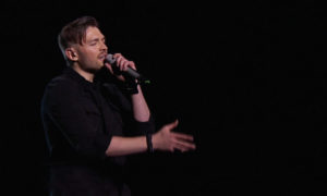 For some reason the public weren’t to keen on this song first time round, so the jury had to save it. The verses may be a little weak but the chorus is a blast of power. Paola was all in white tonight, while a dancer pranced behind her. This was a vocally perfect performance and surely the judges will recognise this again tonight. Problems with the first performance, gave this one a second showing.