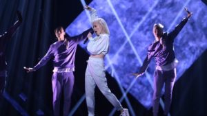 Adrijana comes to stage with a hip-hop sound with a dark edge. She sings a well produced track in Swedish and she is joined by two ballet dancers at the back. She is fresh and comfortable in the stage and she’s definitely brings something new to the contest. However, the stage looks a little bit empty and her performance is just so simple.