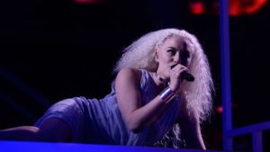 Second up is Alice with the song Running With Lions. Alice’s style I must say is rather bad, the hair, the dress, it just doesn’t work with the song at all. The staging is very simple, the lightings work well and the lion hologram during the middle eight is interesting, but doesn’t take the performance where it needs to be.