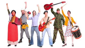 Homens da Luta is a Portuguese improvisational comedy and musical street show, composed of brothers Vasco Duarte and Nuno Duarte "Jel" who are the composer and the lyricist of the song respectively. Their songs are inspired by songs sung during and after the 1974 democratic revolution, and the characters played are caricatures of the revolutionary singers of that time. They often use the term "struggle" to invoke the slogans that became famous during the revolutionary era. They appeared for the first time on television five years ago in a comedy show and they have been travelling through the cities and villages of Portugal spreading their music and their sense of humour. Also, they edited an mp3 album called A Canção é Uma Arma consisting of 14 themes and one of their most popular songs is E o povo, pá? In 2010, Homens da Luta took part in the RTP Song Festival, integrating the list for the online voting, with the song Luta assim não dá. Nonetheless their song was disqualified for failing to follow the rules of the Festival da Cançao and the Eurovision Song Contest.