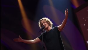 Xavier was filmed around town performing in various locales in his postcard.This was the first of two songs co-written by Danish songwriter Thomas Stengaard. Thomas is best known as a co-writer of Denmark’s winning song in 2013, Emmelie De Forest and Only Teardrops. No pipe to introduce this song, as Xavier features alone with his guitar. A slow acoustic start bursts into a vigorous chorus, and a brass instrument is added for extra effect. Another song that sounded very personal, but in a more boisterous manner than Ryk. Xavier received a standing ovation.